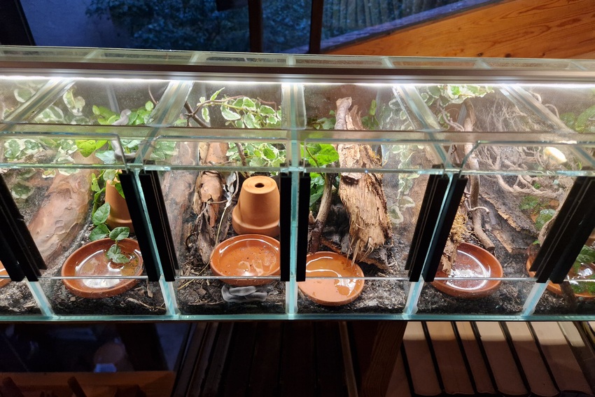 Aufzuchtterrarien der kleinen Nachzuchten.