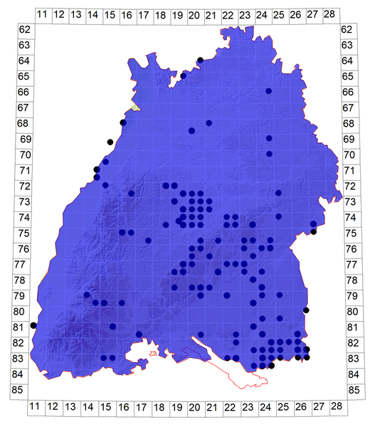 Schematische Verbreitung von P. c-album in Baden-Württemberg: