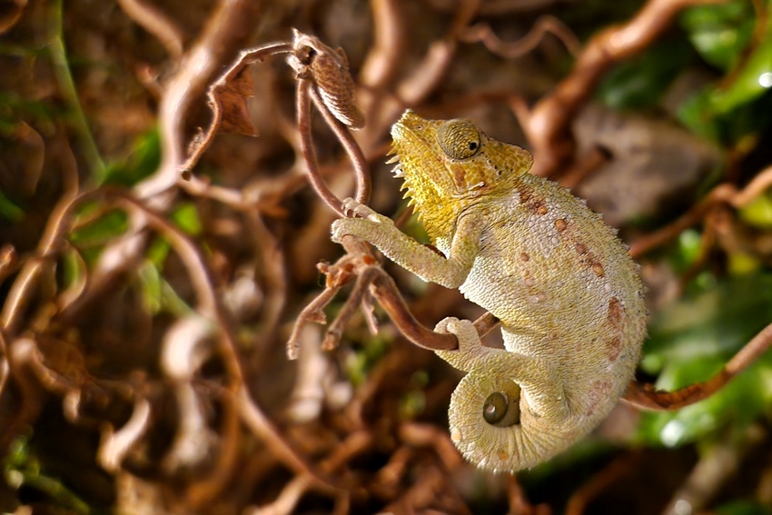 Etwa zwei Jahre altes Weibchen des Helmchamäleons.